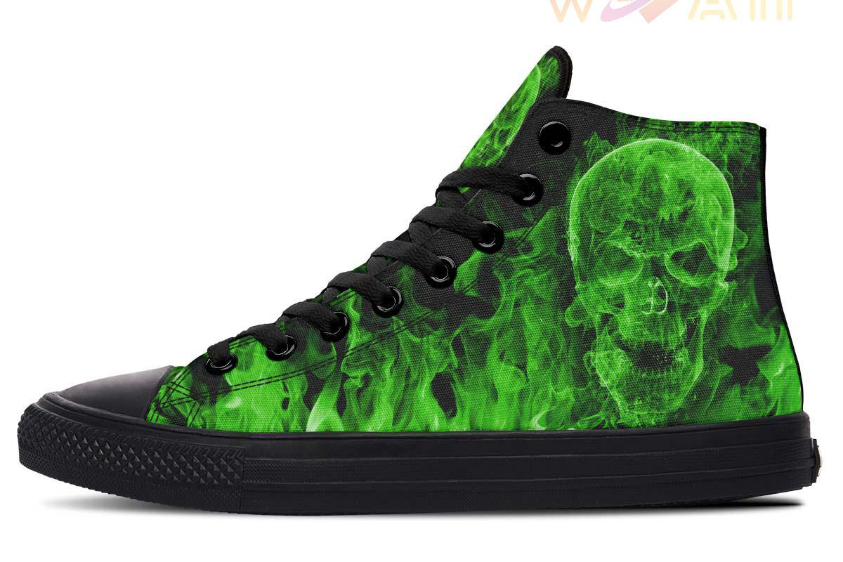 Green Skull Flames High Top Canvas Shoes