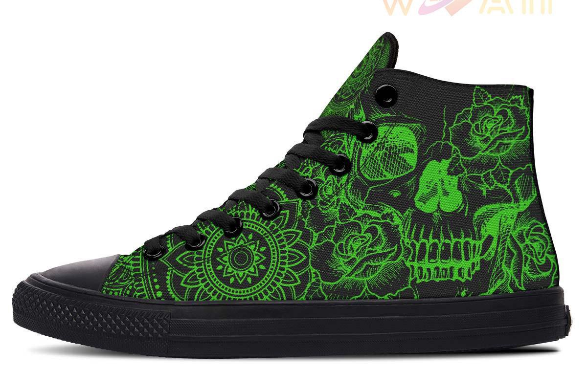 Green Skull Mandala High Top Canvas Shoes