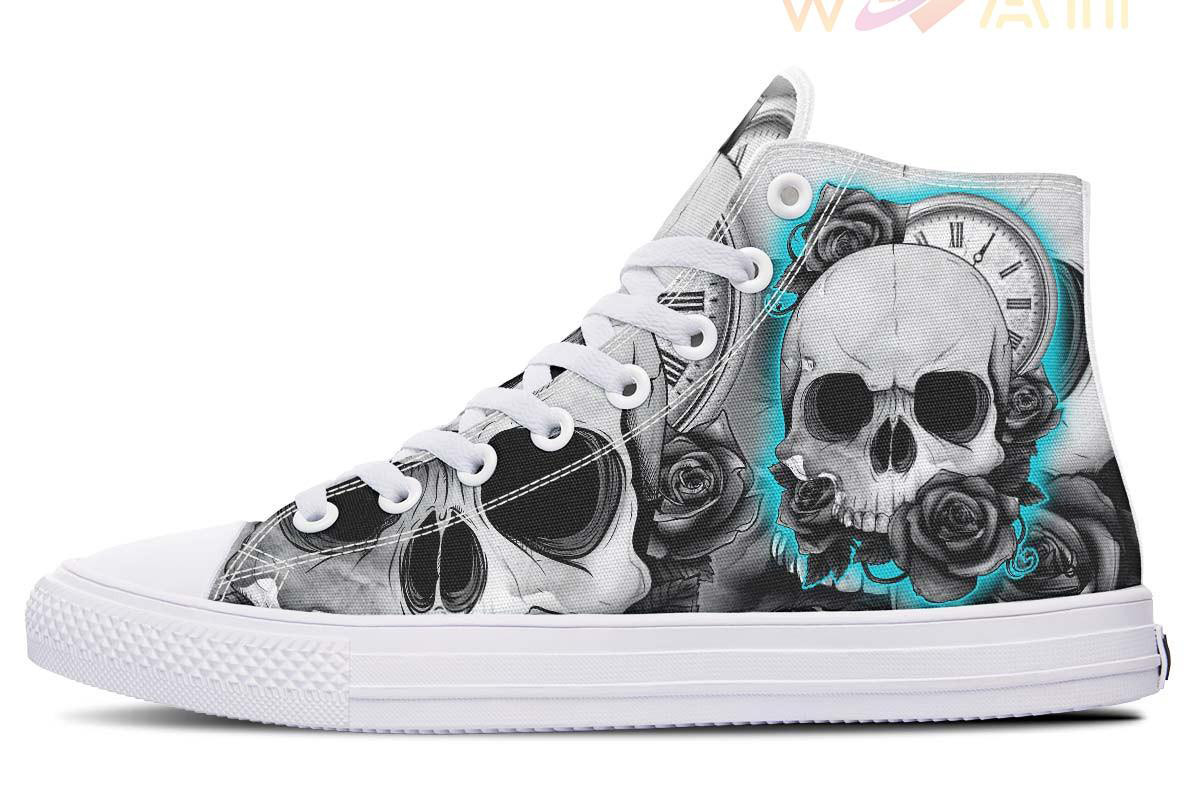 Grey And Blue Fashion Skull High Top Canvas Shoes