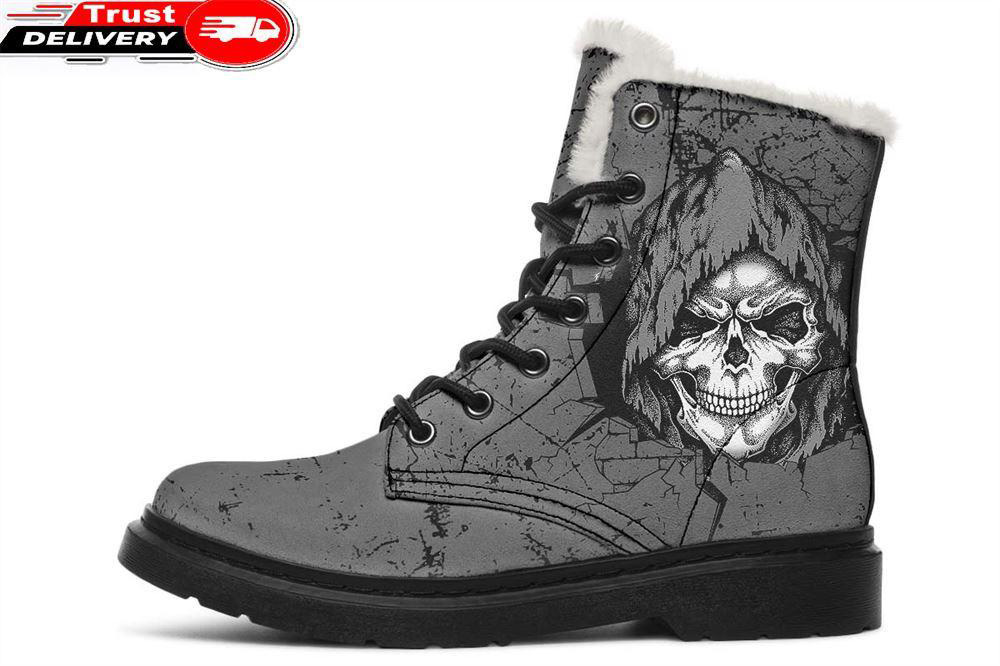 Grey Hoodie Skull Faux Fur Leather Boots is a great pair of boots can really complete a look. Prep for unpredictable weather conditions or smart-casual plans with our edit of leather’s boots.