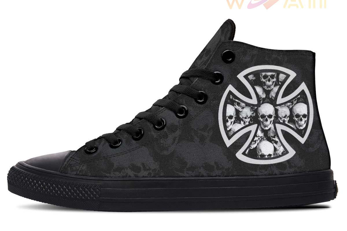 Grey Maltese Cross And Skull High Top Canvas Shoes