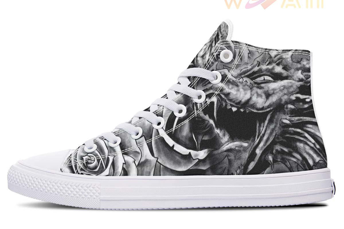 This Grey Scary Dragon High Top Canvas Shoes was originally designed to be basketball shoes. These women’s and men’s casual shoes have become the go to walking shoes for just about any situation.