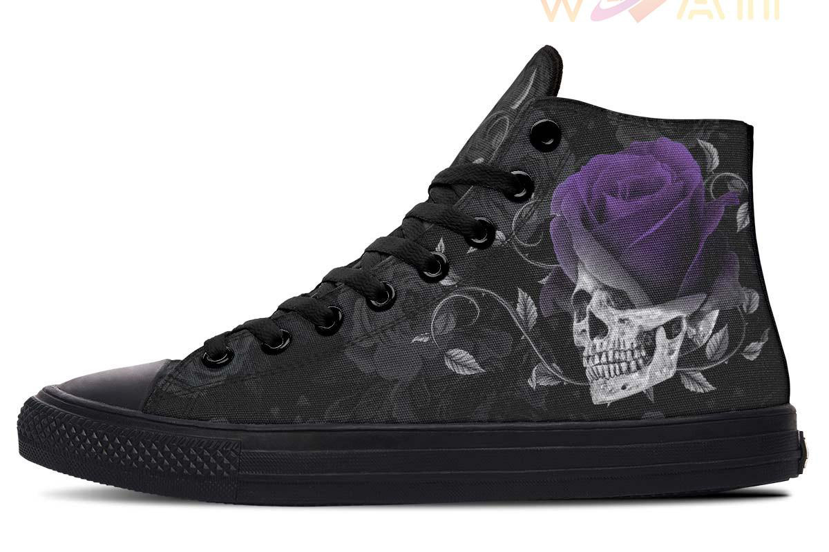 Grey Skull And Purple Rose High Top Canvas Shoes