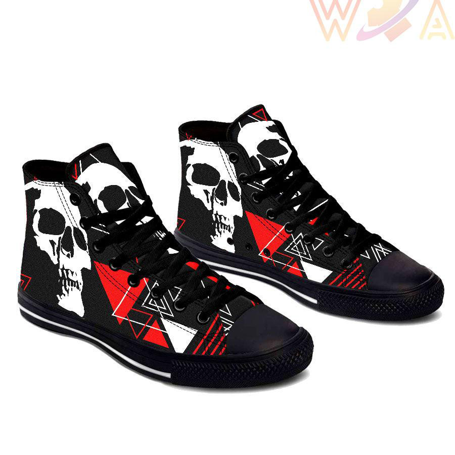 This Grey Triangle Skull High Top Shoes was originally designed to be basketball shoes. These women’s and men’s casual shoes have become the go to walking shoes for just about any situation.