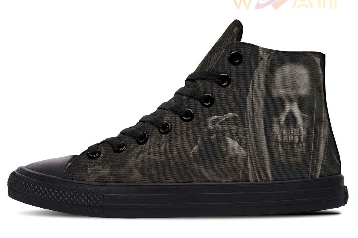 Grim Reaper And Raven Tattoo High Top Canvas Shoes