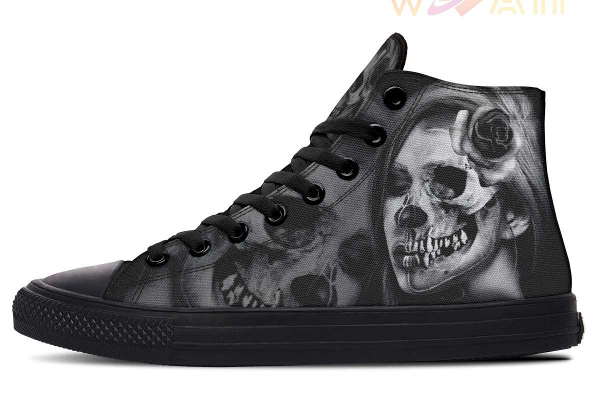 This Half Skull Half Beauty High Top Canvas Shoes was originally designed to be basketball shoes. These women’s and men’s casual shoes have become the go to walking shoes for just about any situation.