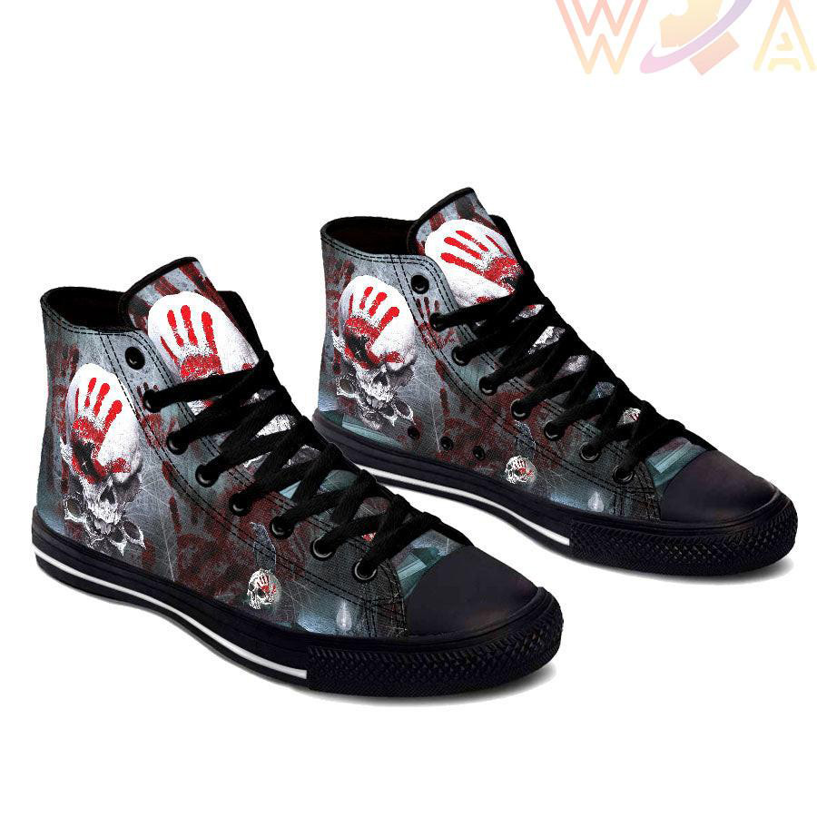 This Hand Certification Skull High Top Shoes was originally designed to be basketball shoes. These women’s and men’s casual shoes have become the go to walking shoes for just about any situation.