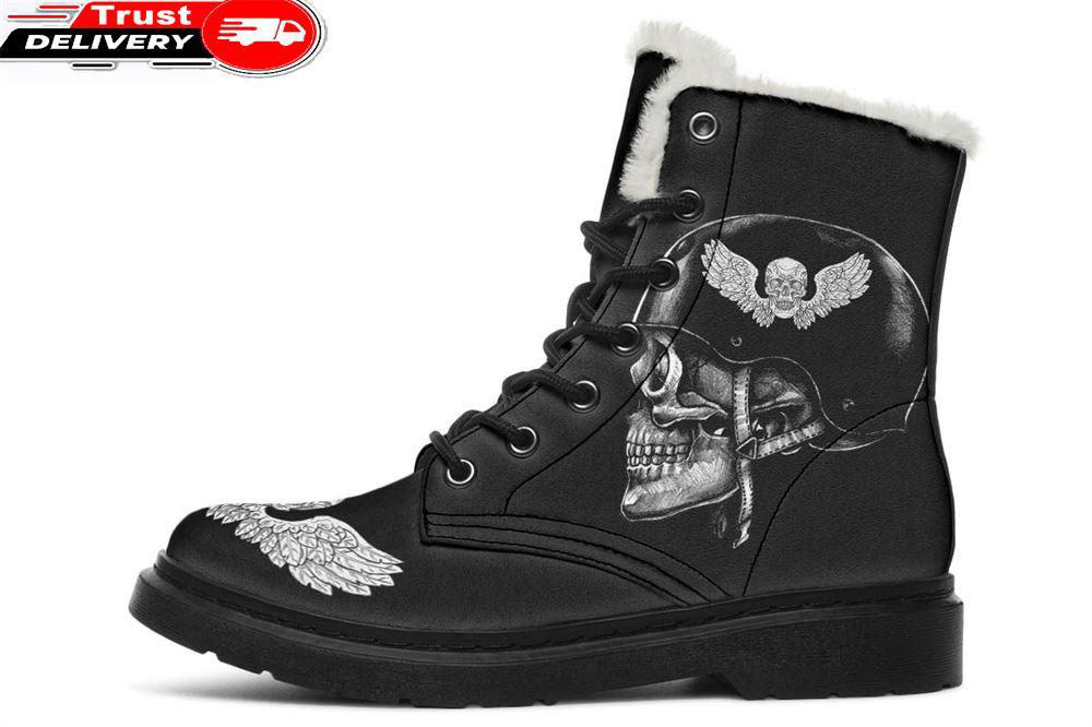 Helmet Skull Faux Fur Leather Boots