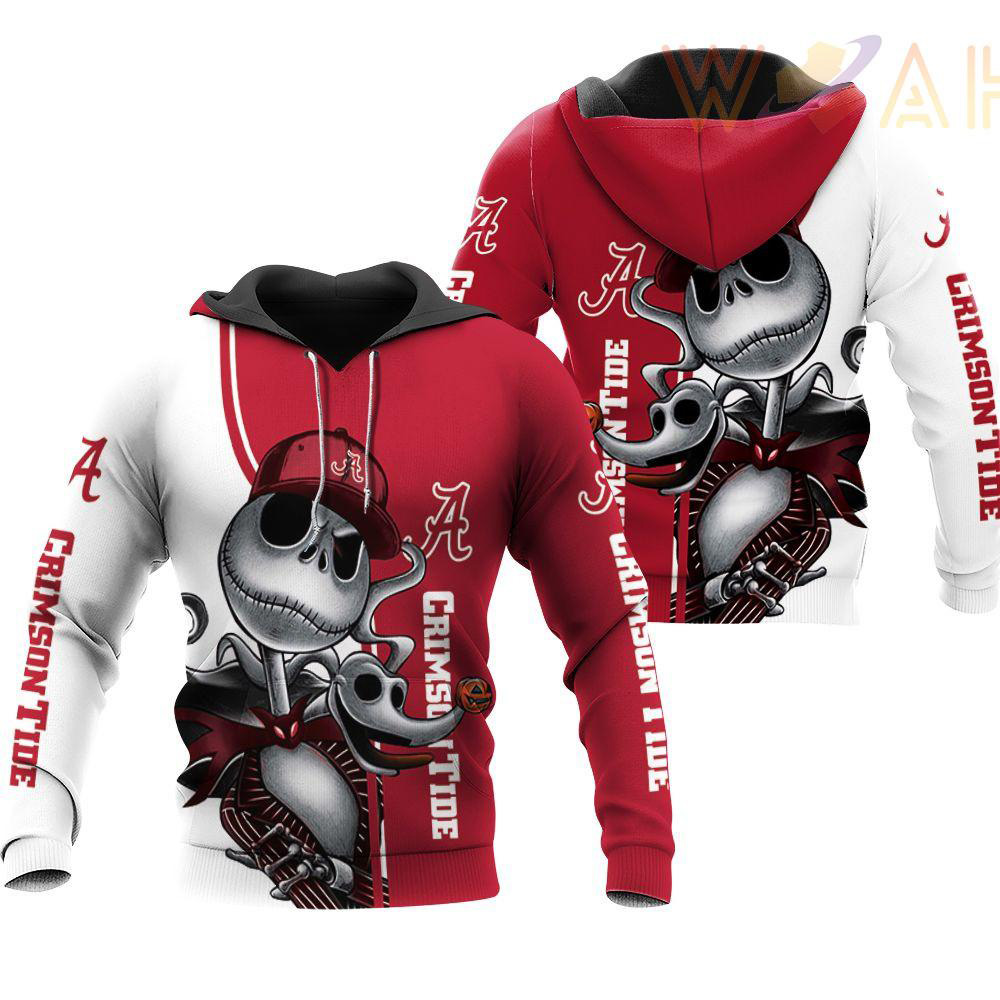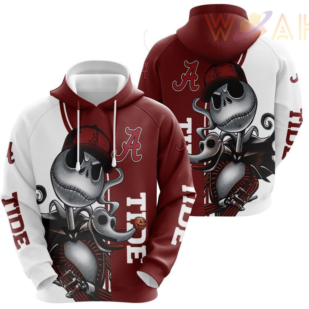 Alabama Crimson Tide Jack Skellington And Zero 3d Hoodie