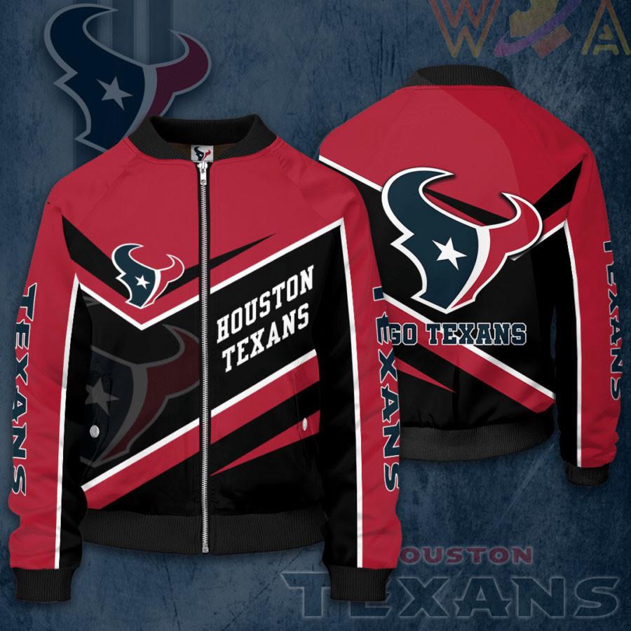 Size: S, M, L, XL, XXL, 3XL, 4XL, 5XL. Please check the Houston Texans bomber jacket sizechart and measuring instruction carefully before placing order as we CAN NOT offer return or refund if you choose a wrong size.