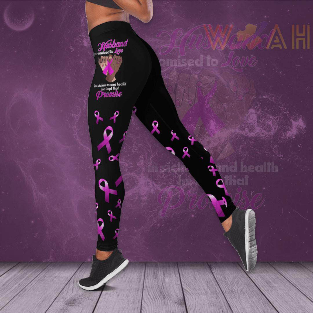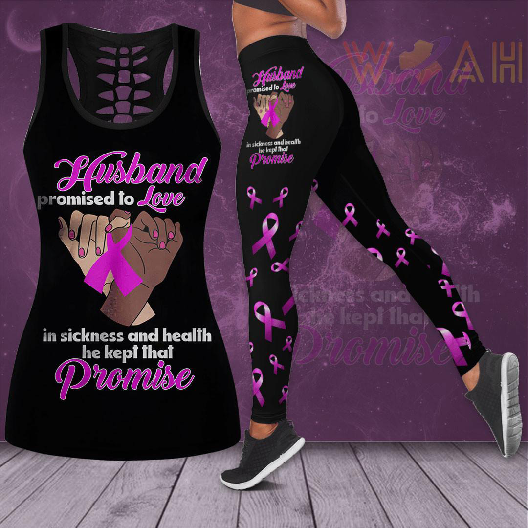 “Husband Promised To Love In Sickness And Health He Kept That Promise” Breast Cancer Awareness 3D Hollow Tank Top & Leggings