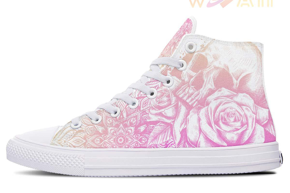 This I Love Skull And Roses High Top Canvas Shoes was originally designed to be basketball shoes. These women’s and men’s casual shoes have become the go to walking shoes for just about any situation.