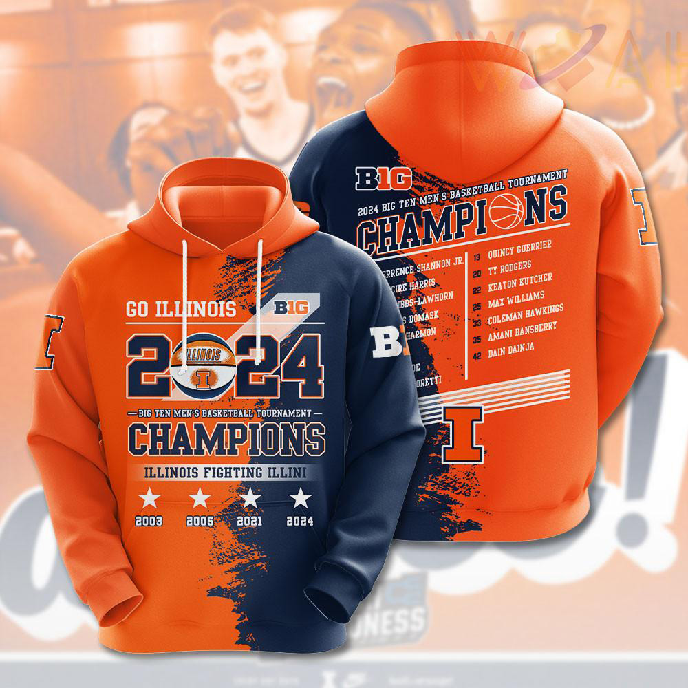 Illinois Fighting Illini Mens Basketball 3D Hoodie, T-shirt WOAHTEE0424H