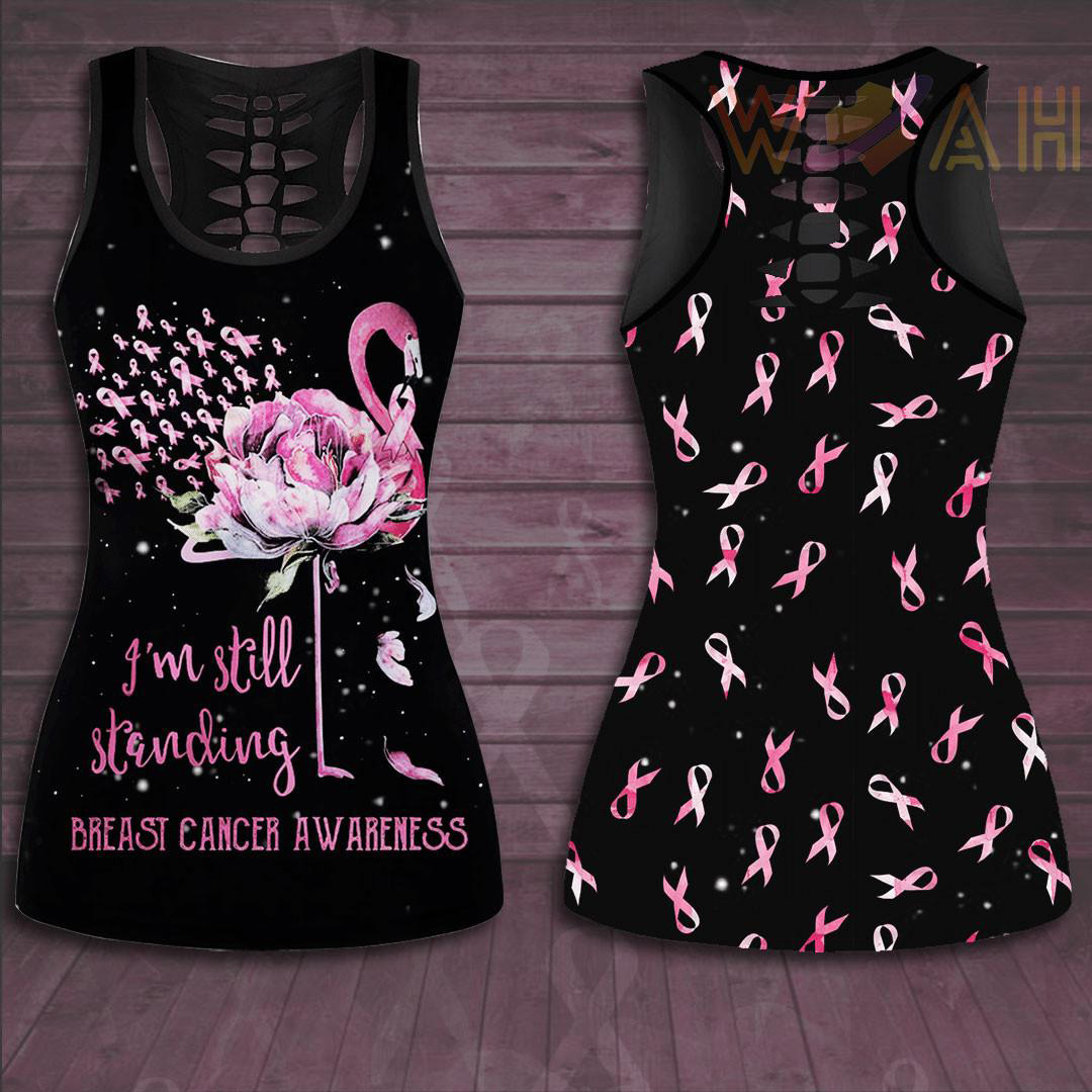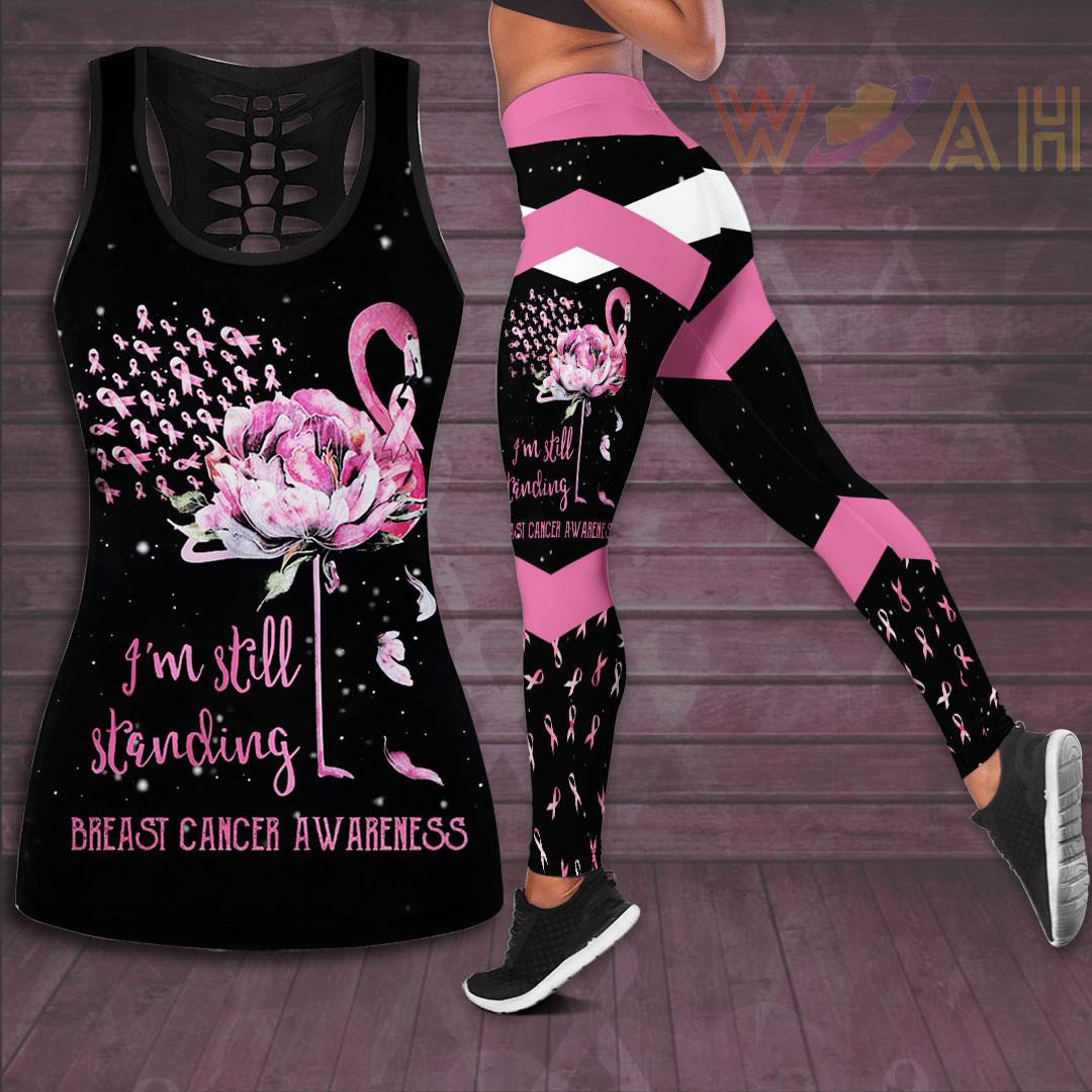 “I’m Still Standing” Flamingo Flower Breast Cancer Awareness 3D Hollow Tank Top & Leggings