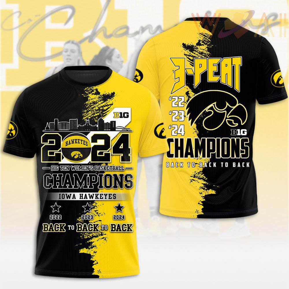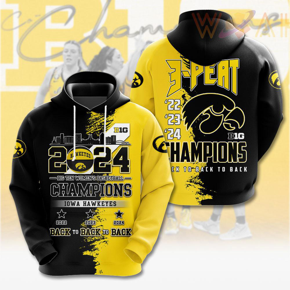This Iowa Hawkeyes back to back to back 3D hoodie, t-shirts will make a perfect gift for Iowa Hawkeyes fans.
