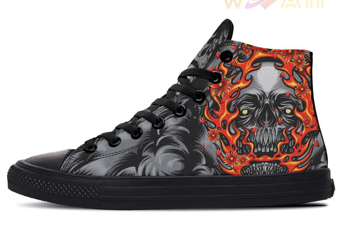 Japanese Skull Flames High Top Canvas Shoes