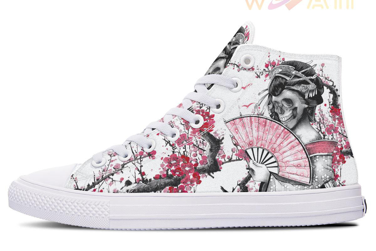 This Japanese Skull Woman High Top Canvas Shoes was originally designed to be basketball shoes. These women’s and men’s casual shoes have become the go to walking shoes for just about any situation.
