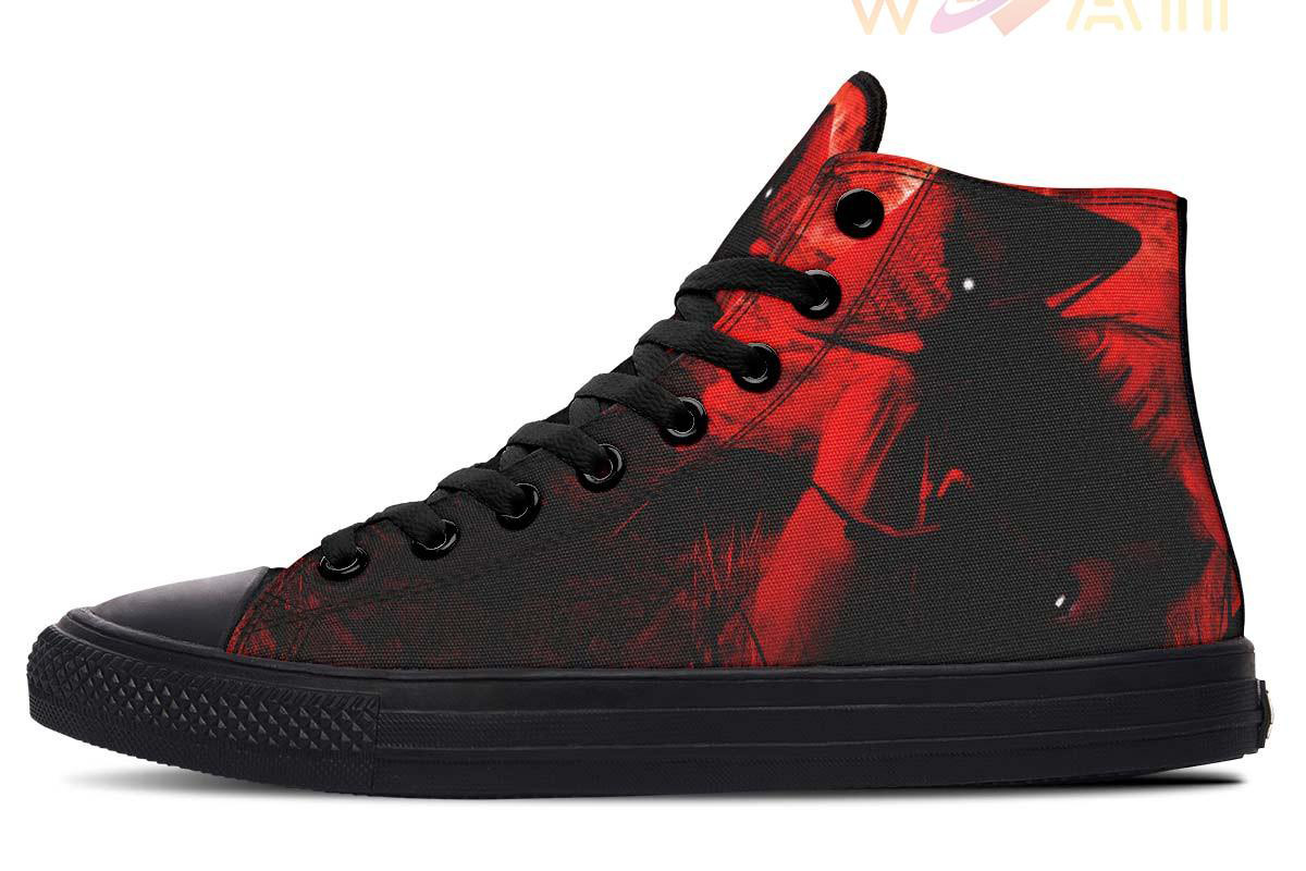 - The shoelaces run through these metal eyelets for added durability. Moreover, This high top shoes adds a bit of extra support and comfort bout more importantly, more space for your design the outer all over printed material is full canvas.
