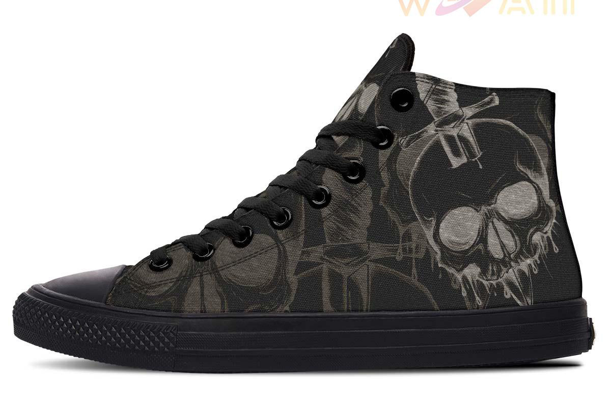 This Knife Through A Skull High Top Canvas Shoes was originally designed to be basketball shoes. These women’s and men’s casual shoes have become the go to walking shoes for just about any situation.