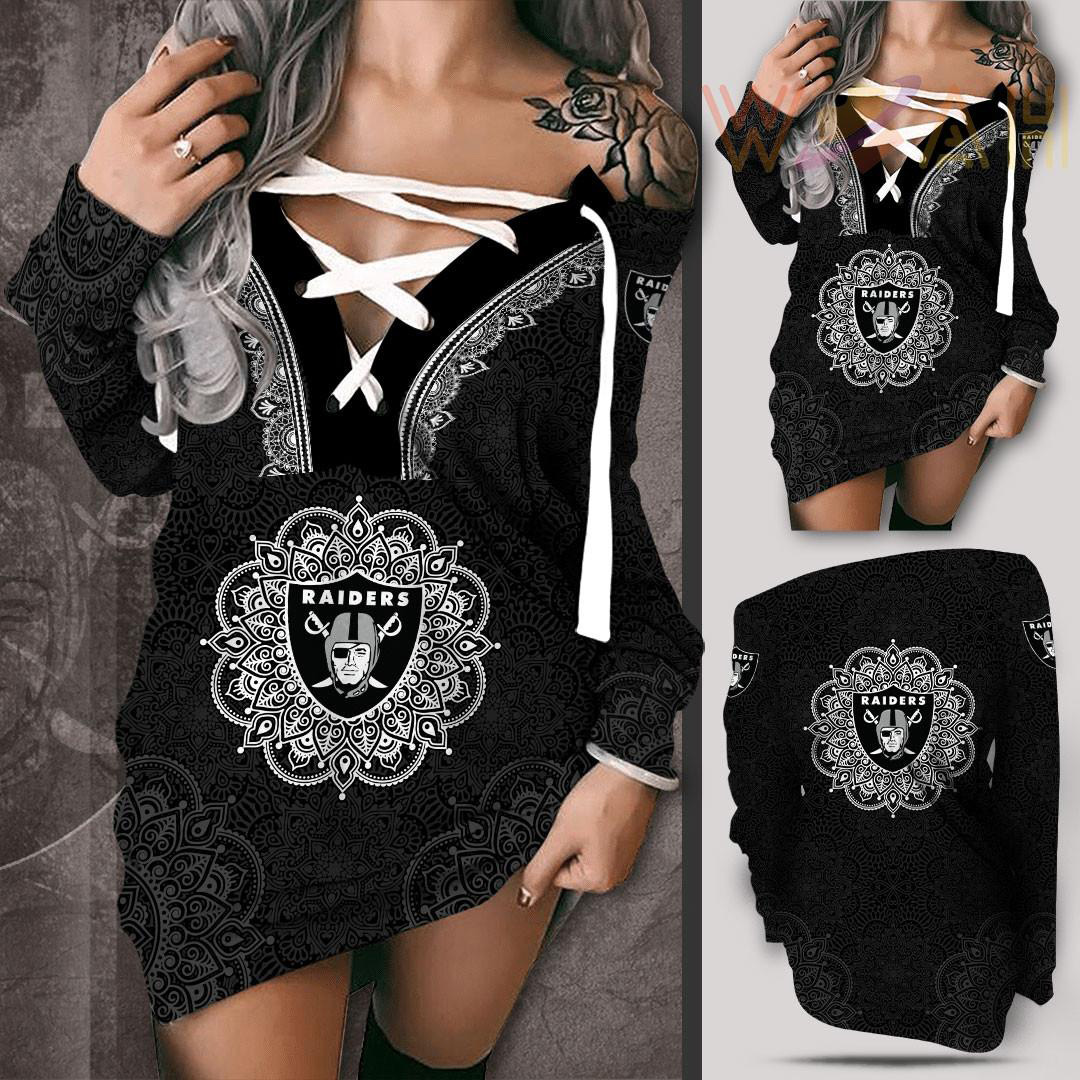 This Las Vegas Raiders Off Shoulder Deep V-Neck Lace Up Long Sleeve Pullover will make a perfect gift for Las Vegas Raiders fans.