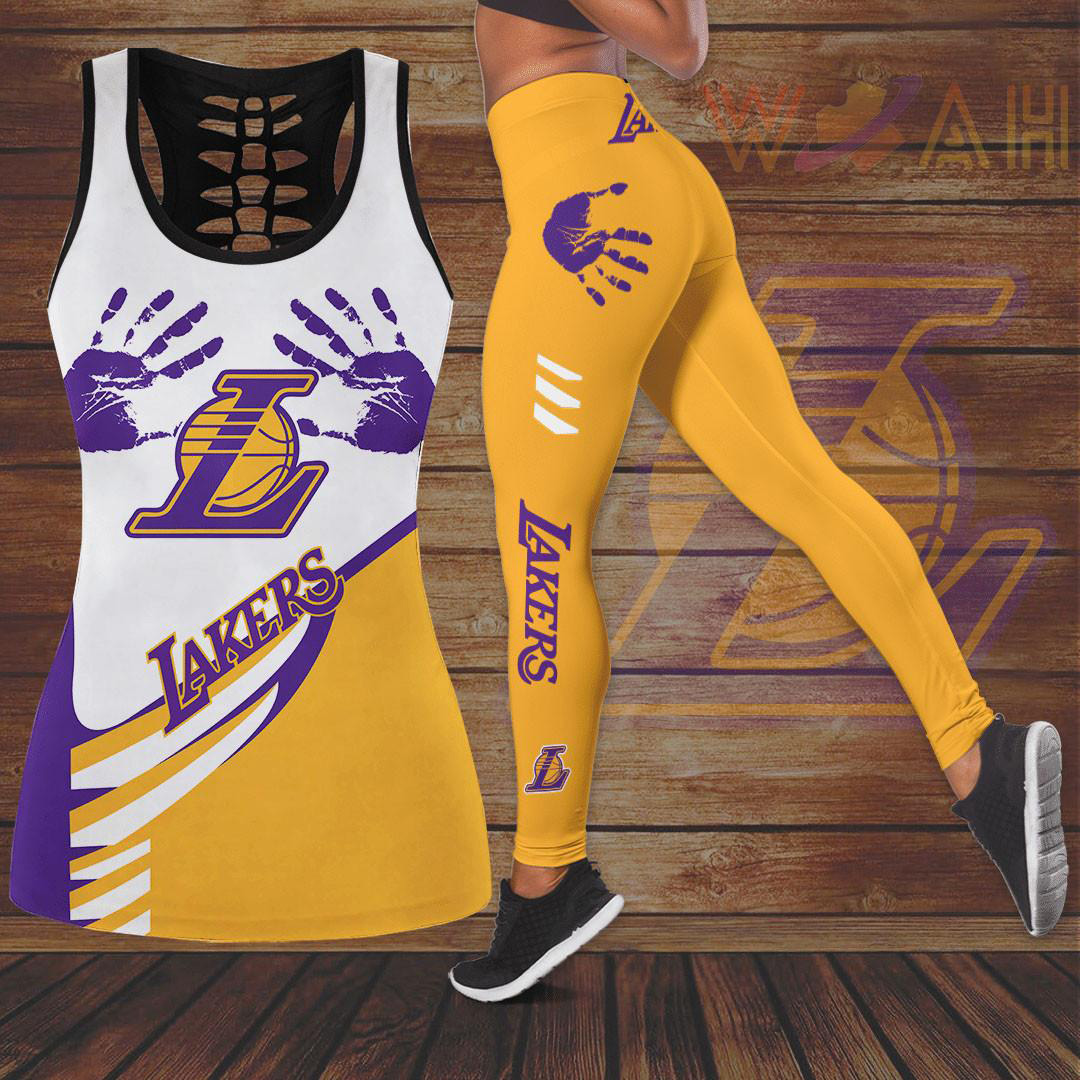 Los Angeles Lakers LAL NBA Hollow Tank Top & Leggings Set 3D