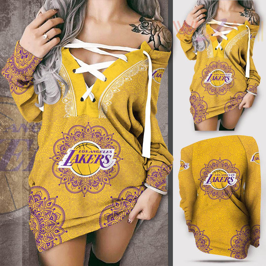 This Los Angeles Lakers LAL Off Shoulder Deep V-Neck Lace Up Long Sleeve Pullover will make a perfect gift for Los Angeles Lakers fans.