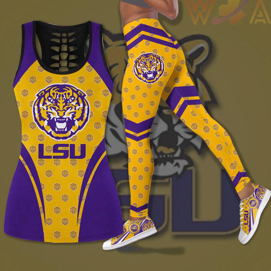 ABOUT THIS LSU TIGERS HOLLOW TANK TOP & LEGGINGS & BRA SPORTS…