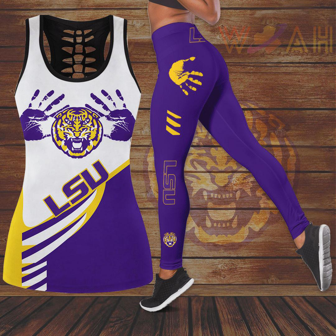This Lsu Tigers Hollow Tank Top & Leggings & Bra Sports will make a perfect gift for Lsu Tigers fans.