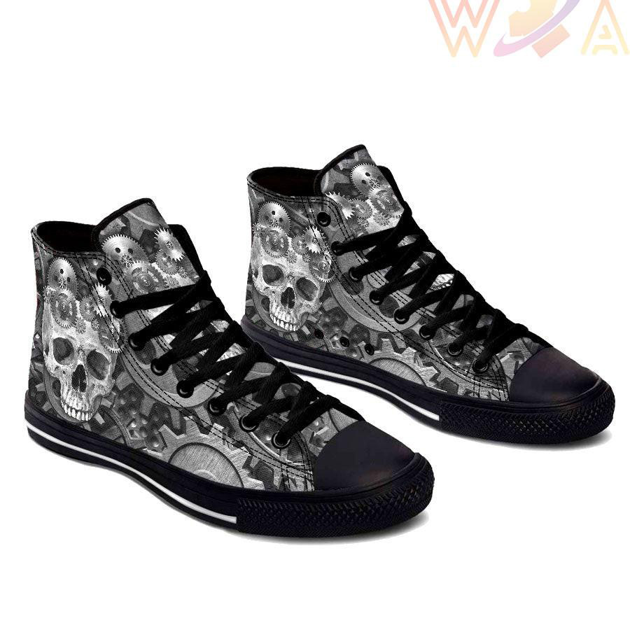 This Machines Skull High Top Shoes was originally designed to be basketball shoes. These women’s and men’s casual shoes have become the go to walking shoes for just about any situation.
