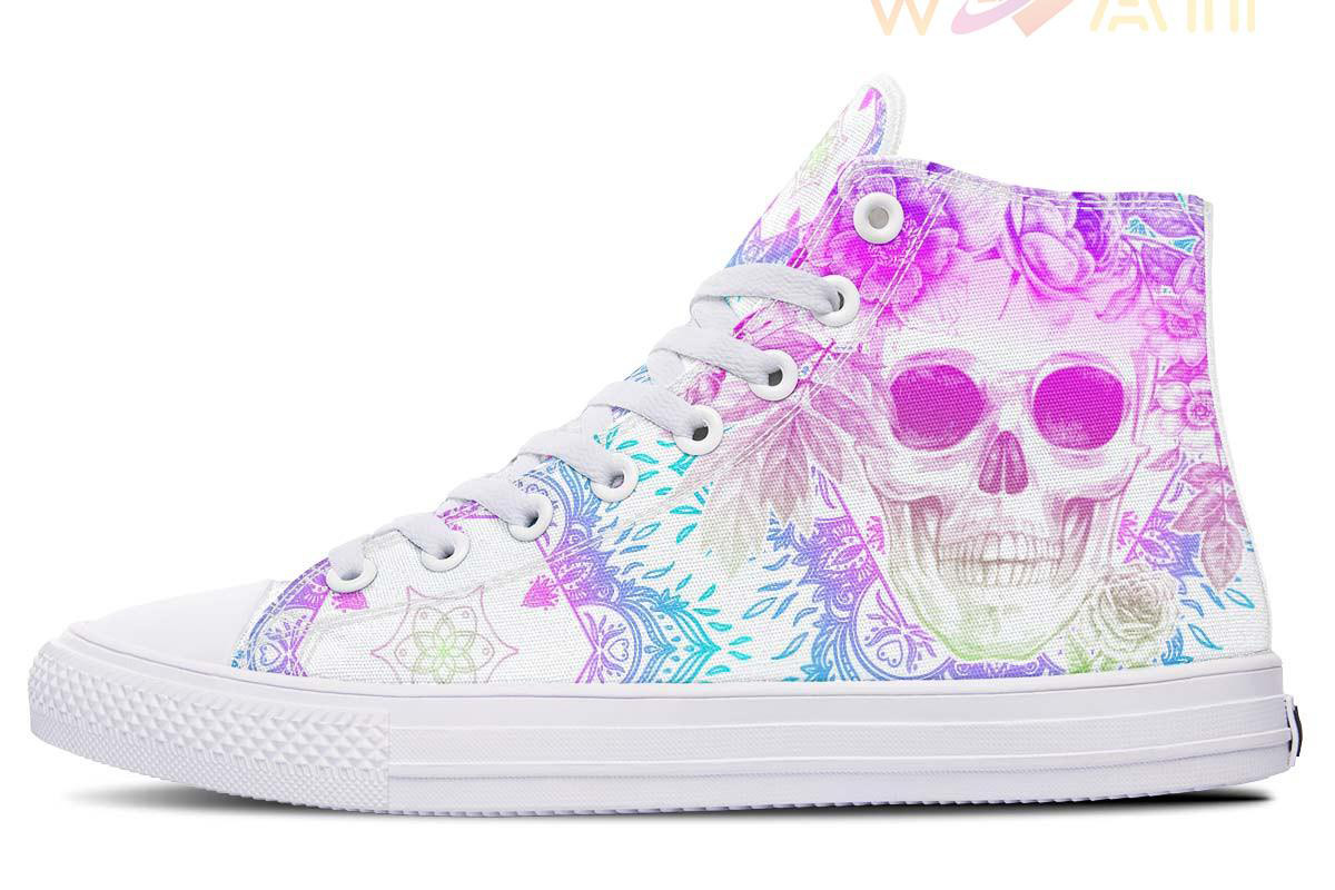 Mandala Flowers And Skull Art High Top Canvas Shoes