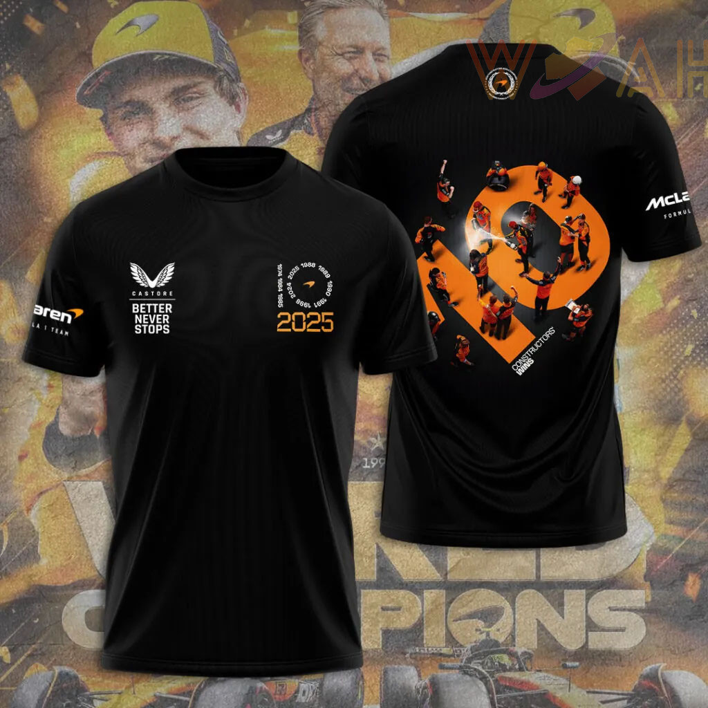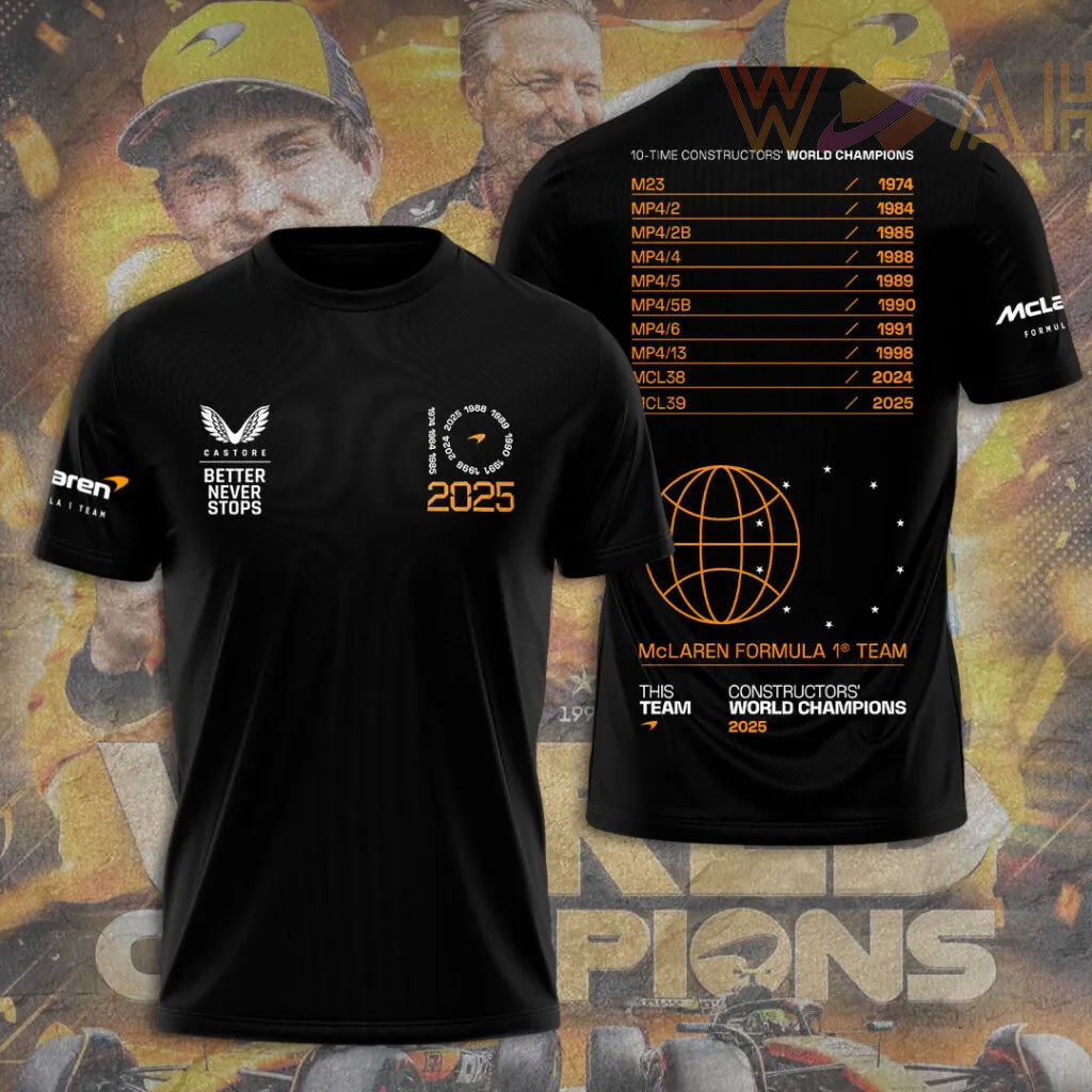 ABOUT THIS MCLAREN 2025 CONSTRUCTORS CHAMPIONSHIP T-SHIRT