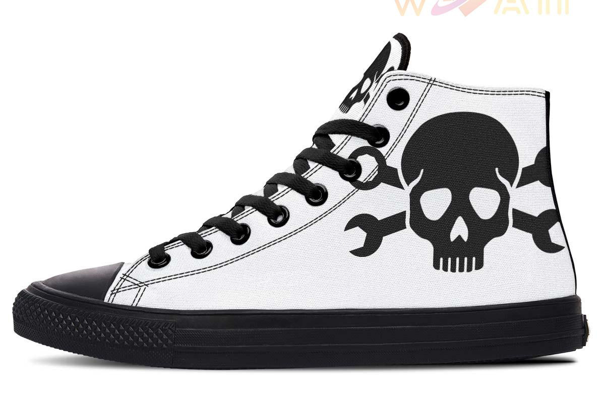 Mechanic Skull Wrench High Top Canvas Shoes