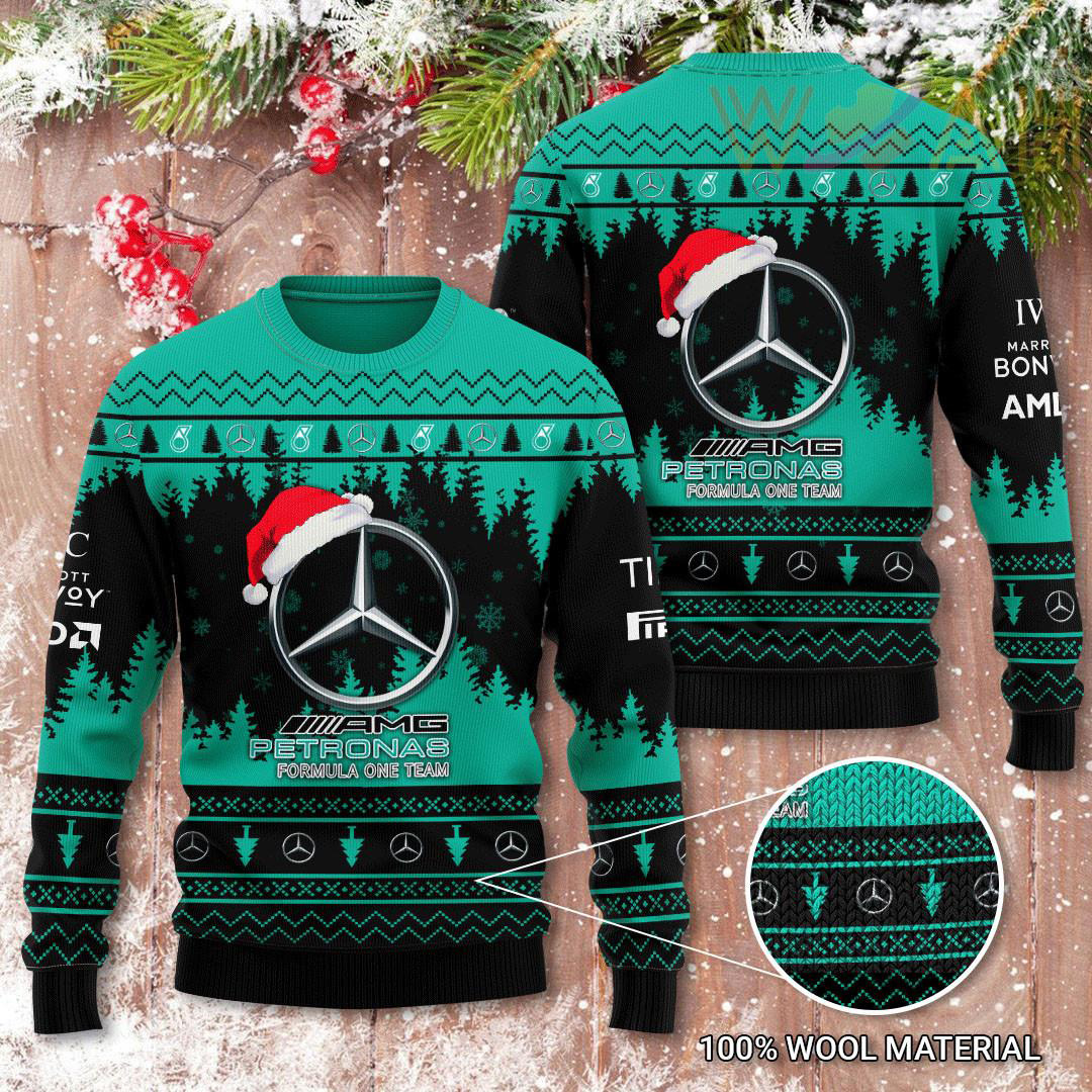 This Mercedes-AMG Petronas Formula One Team 3D Christmas sweater 2022 will be a perfect gift for your loved ones and friends.
