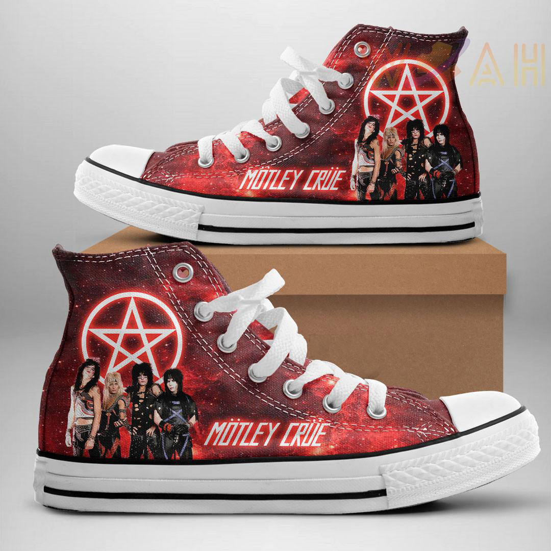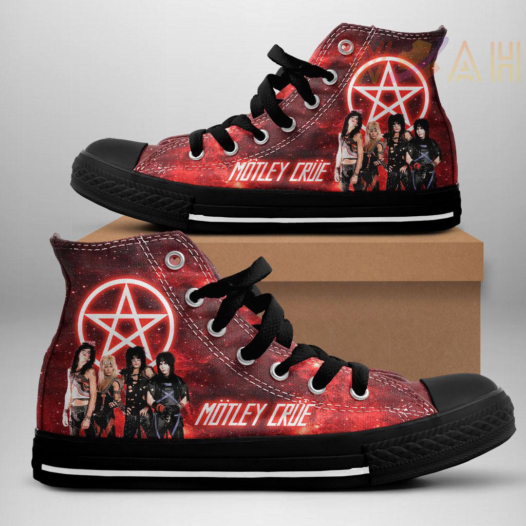 This Mötley Crüe canvas high top shoes will make a perfect gift for Mötley Crüe fans.
