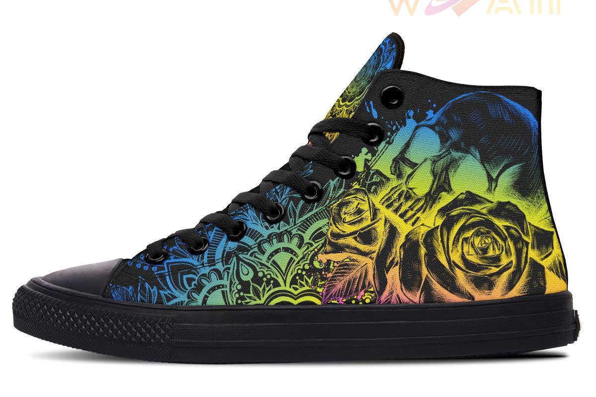 Multicolor Mandala And Skull High Top Canvas Shoes