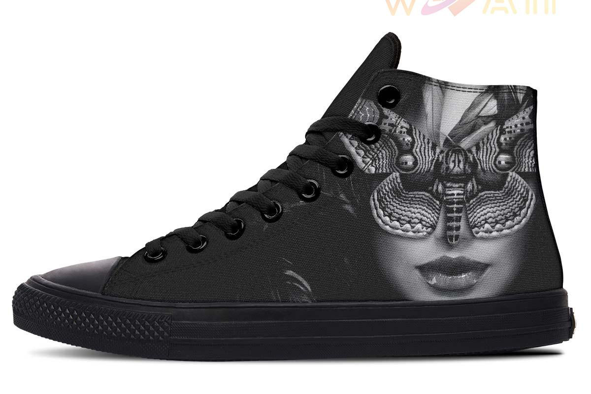 This Mystery Woman Tattoo High Top Canvas Shoes was originally designed to be basketball shoes. These women’s and men’s casual shoes have become the go to walking shoes for just about any situation.