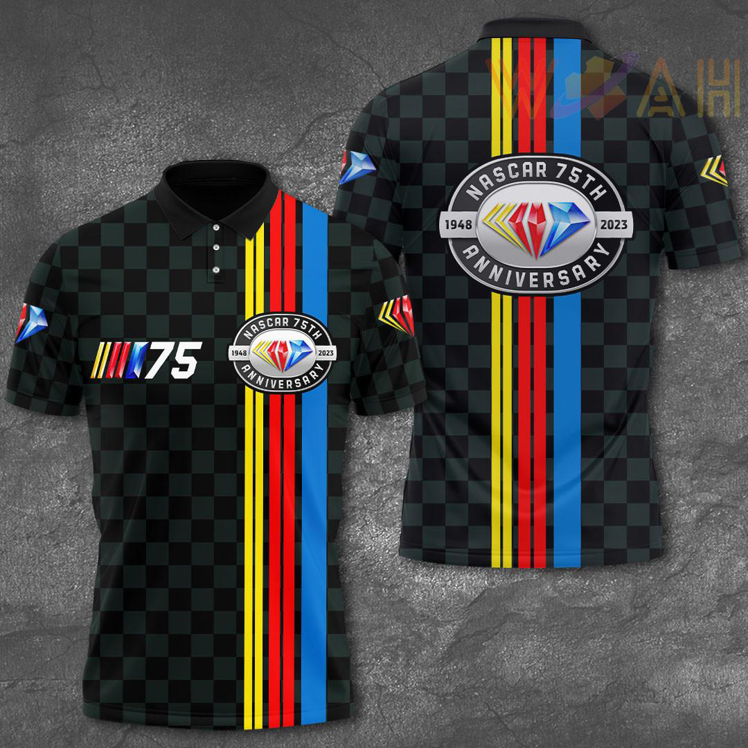 ABOUT THIS NASCAR 75TH ANNIVERSARY POLO…