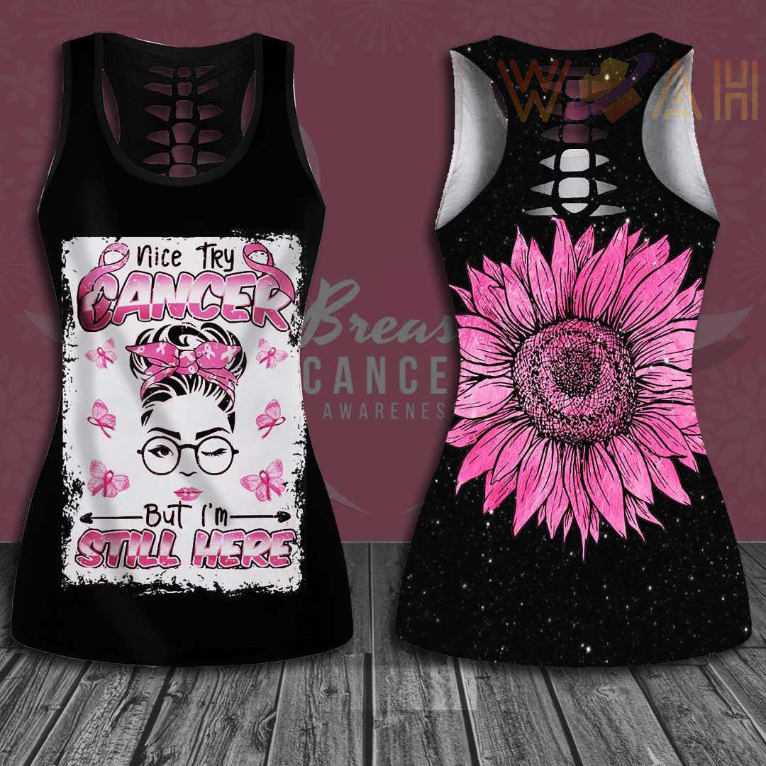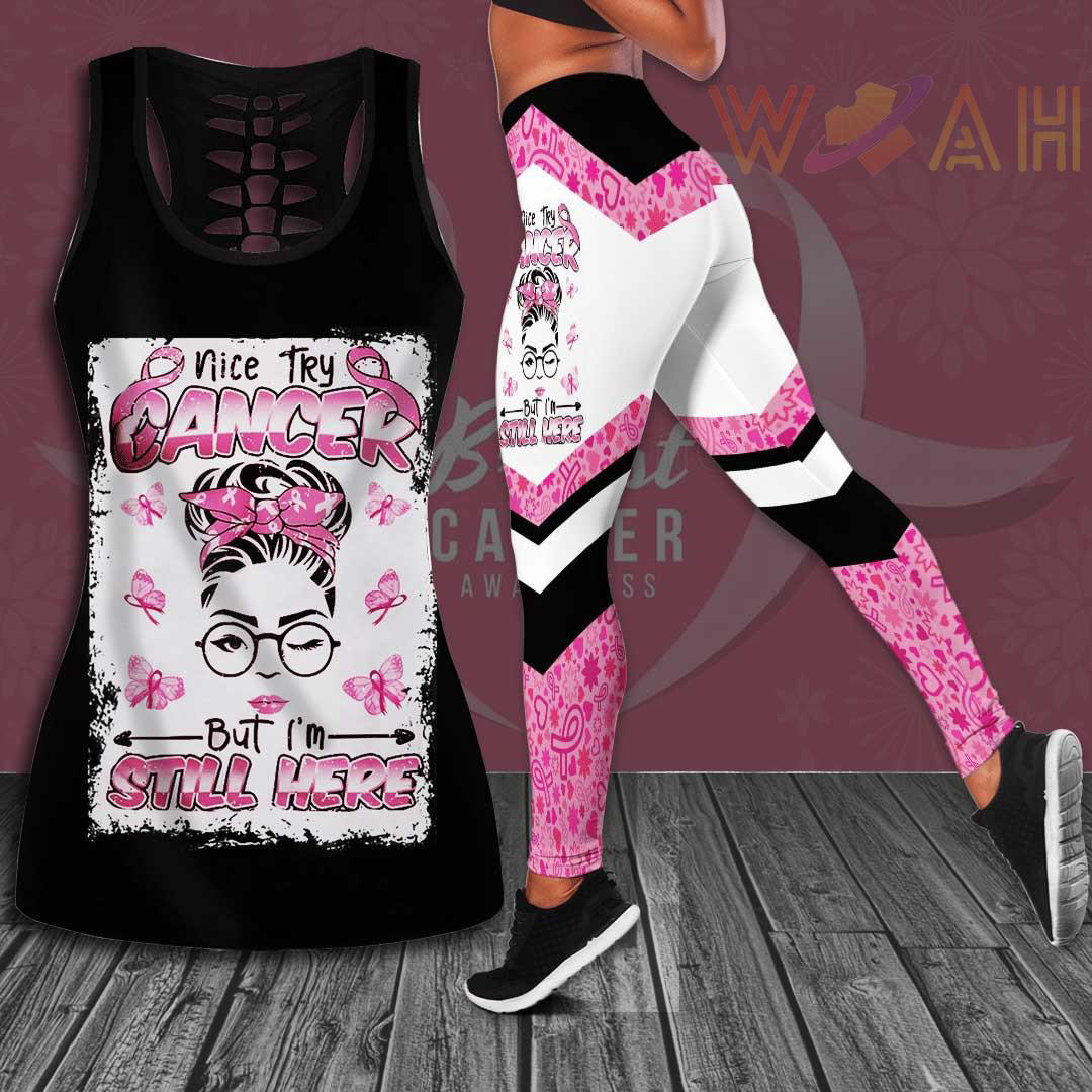“Nice Try Cancer But I’m Still Here” Breast Cancer Awareness 3D Hollow Tank Top & Leggings