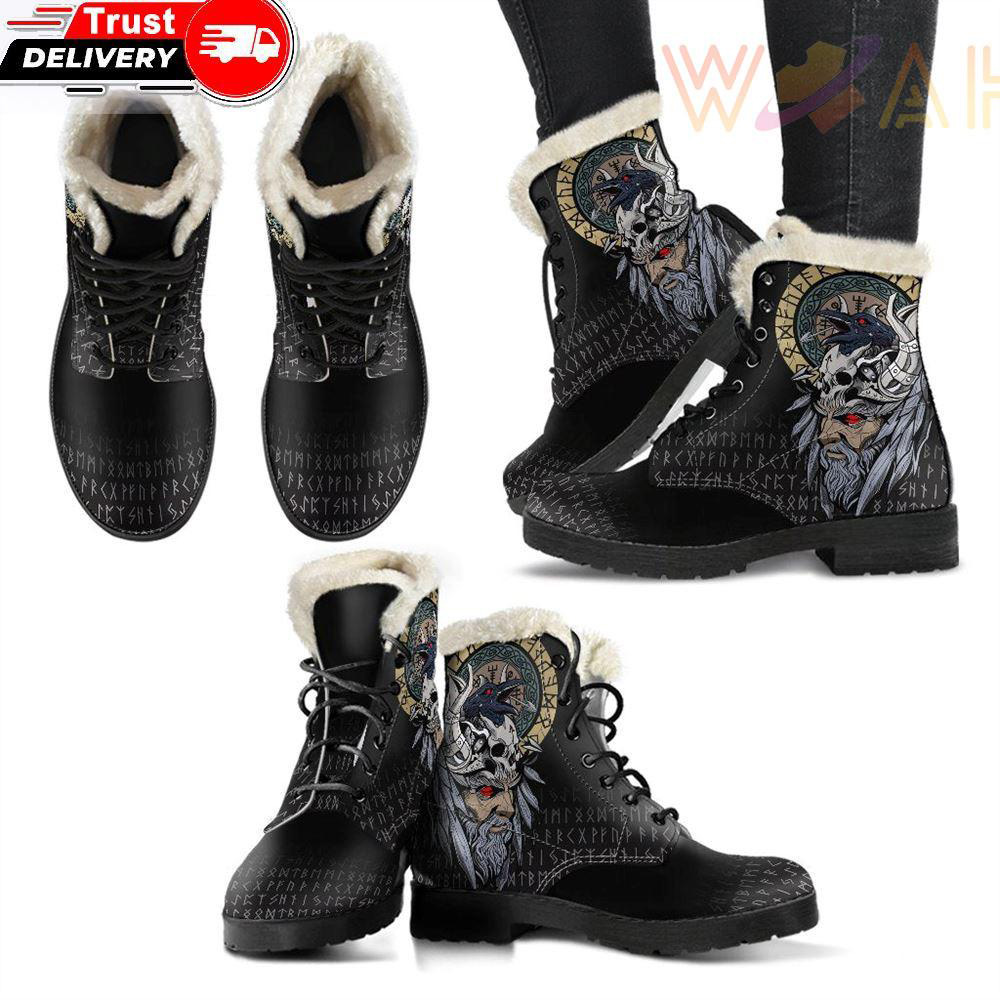 Odin Raven Faux Fur Leather Boots
