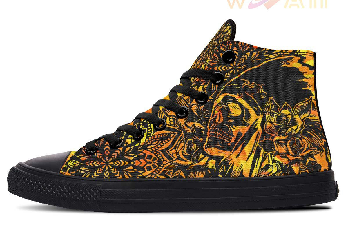 This Orange Native American Skull High Top Canvas Shoes was originally designed to be basketball shoes. These women’s and men’s casual shoes have become the go to walking shoes for just about any situation.
