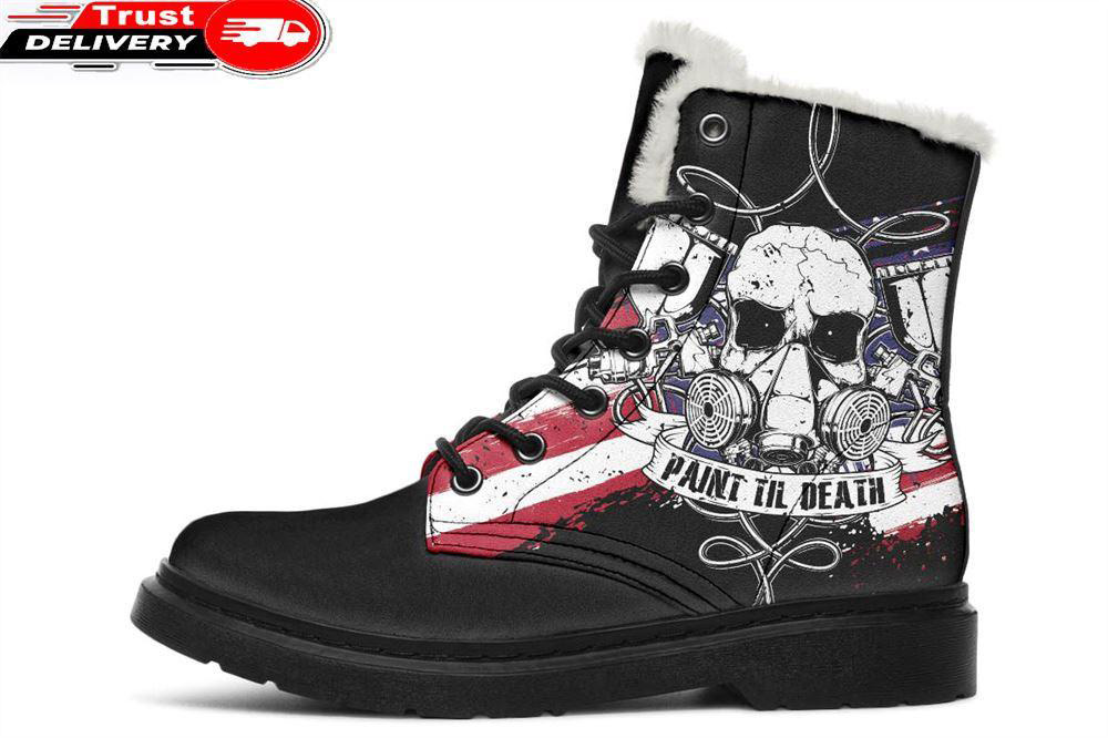 Paint Til Death Us Faux Fur Leather Boots