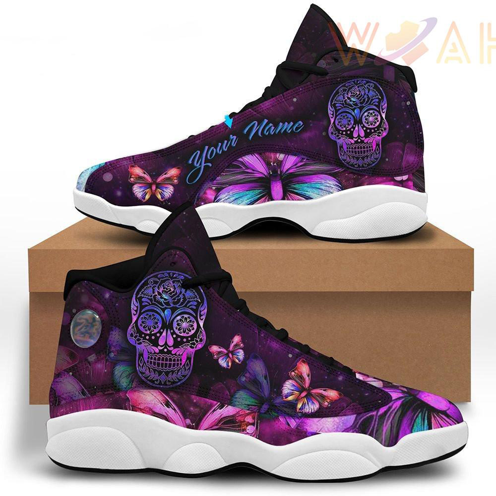 Personalized Name Skull Butterfly Flowers Shoes