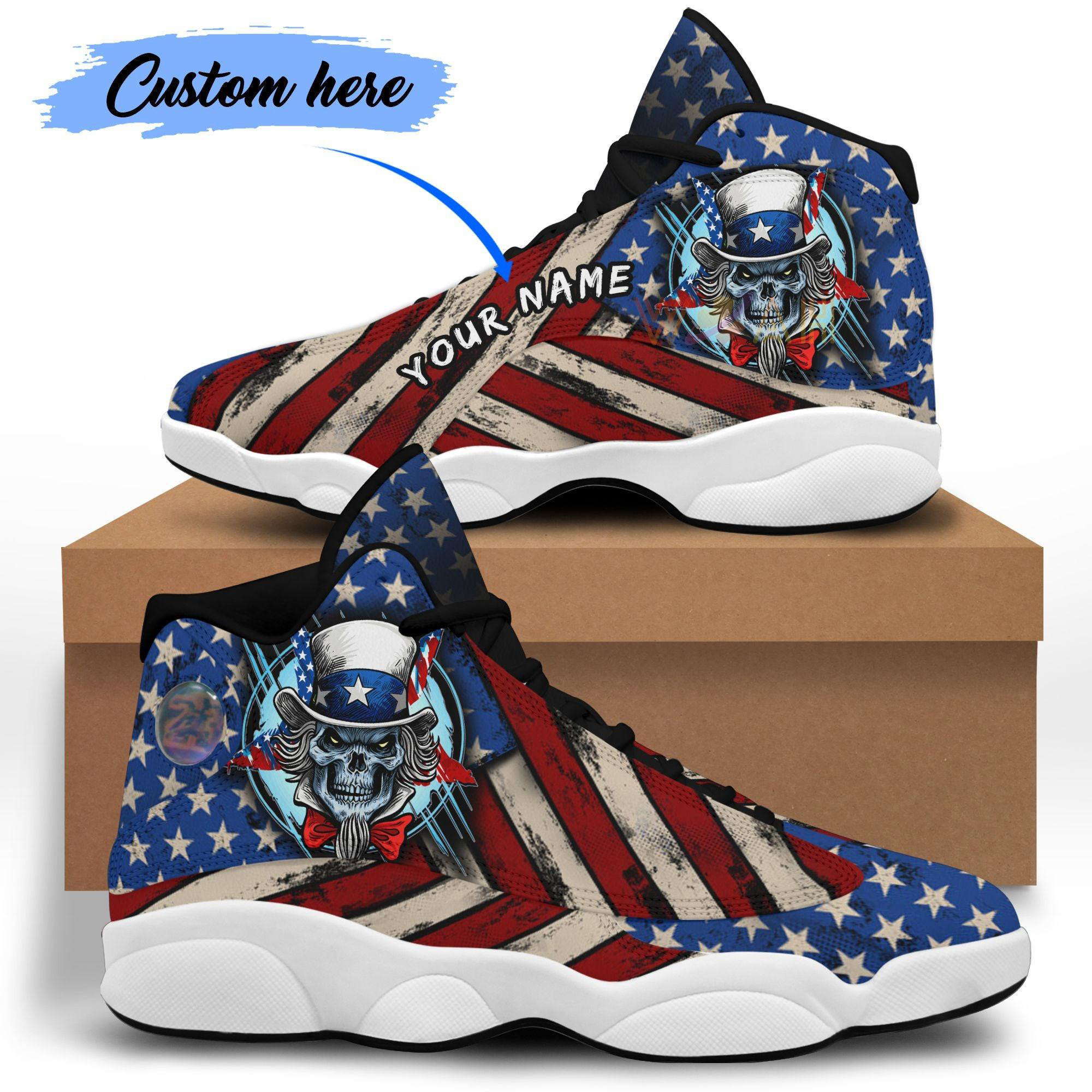 Personalized Name Skull Uncle Sam American Flag Shoes