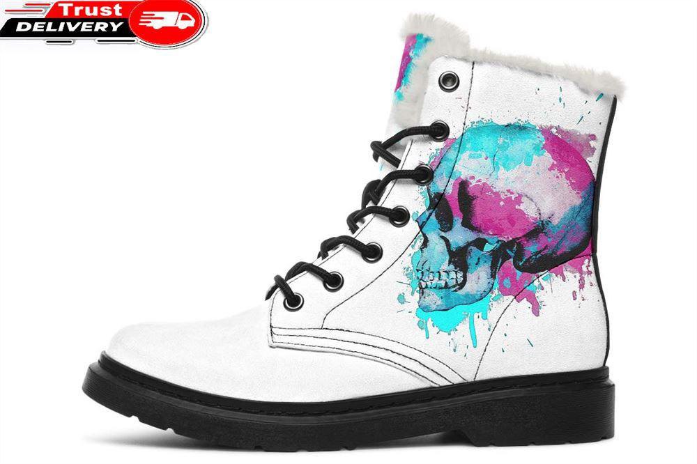 Pink And Blue Splash Skull Faux Fur Leather Boots is a great pair of boots can really complete a look. Prep for unpredictable weather conditions or smart-casual plans with our edit of leather’s boots.