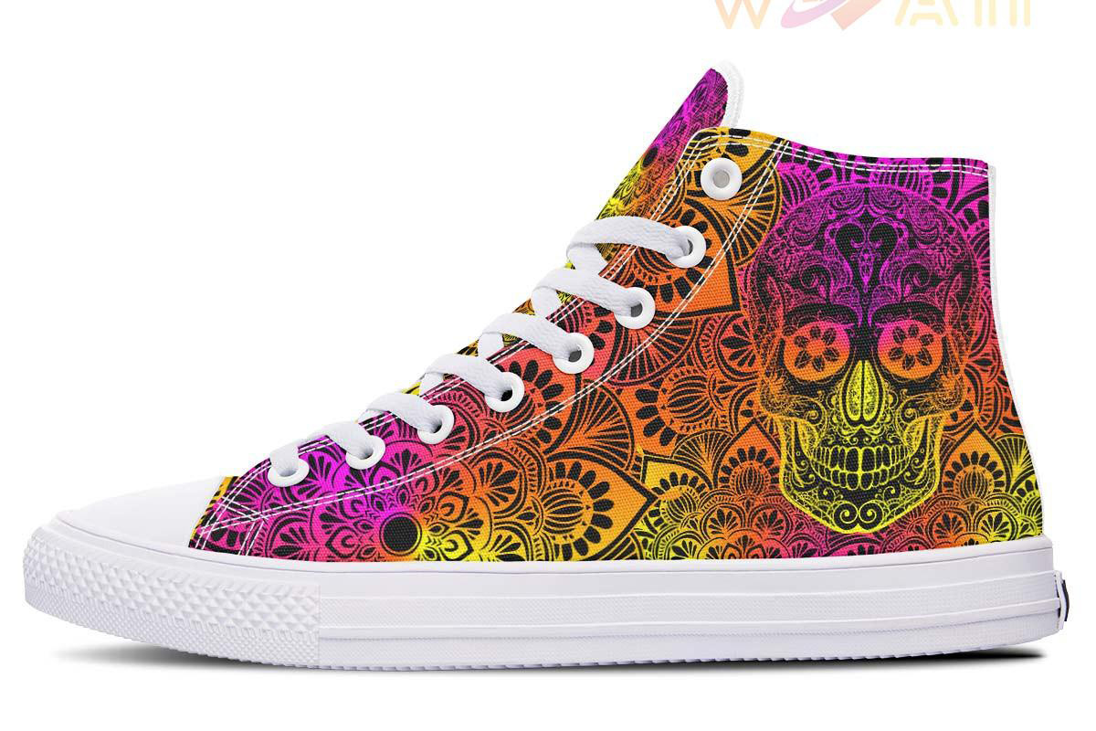 Pink And Yellow Color Merge Skull High Top Canvas Shoes