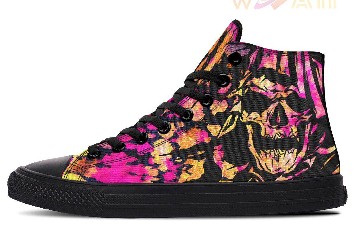 Pink Tie Dye Skull High Top Canvas Shoes