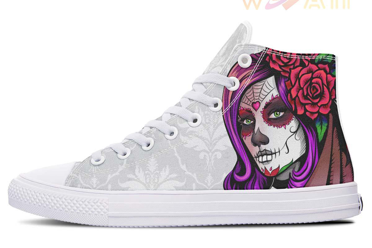 Pretty Sugar Skull Woman High Top Canvas Shoes