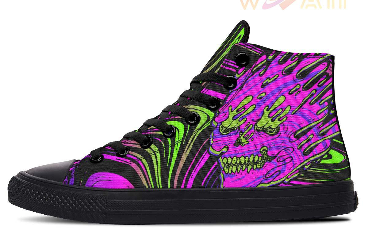 Psychedelic Pink Purple Skull High Top Canvas Shoes