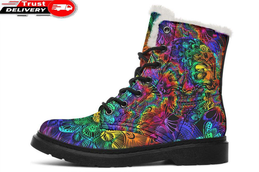 Psychedelic Skull Faux Fur Leather Boots is a great pair of boots can really complete a look. Prep for unpredictable weather conditions or smart-casual plans with our edit of leather’s boots.