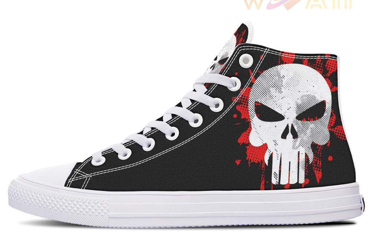 Punisher And Red Splash High Top Canvas Shoes